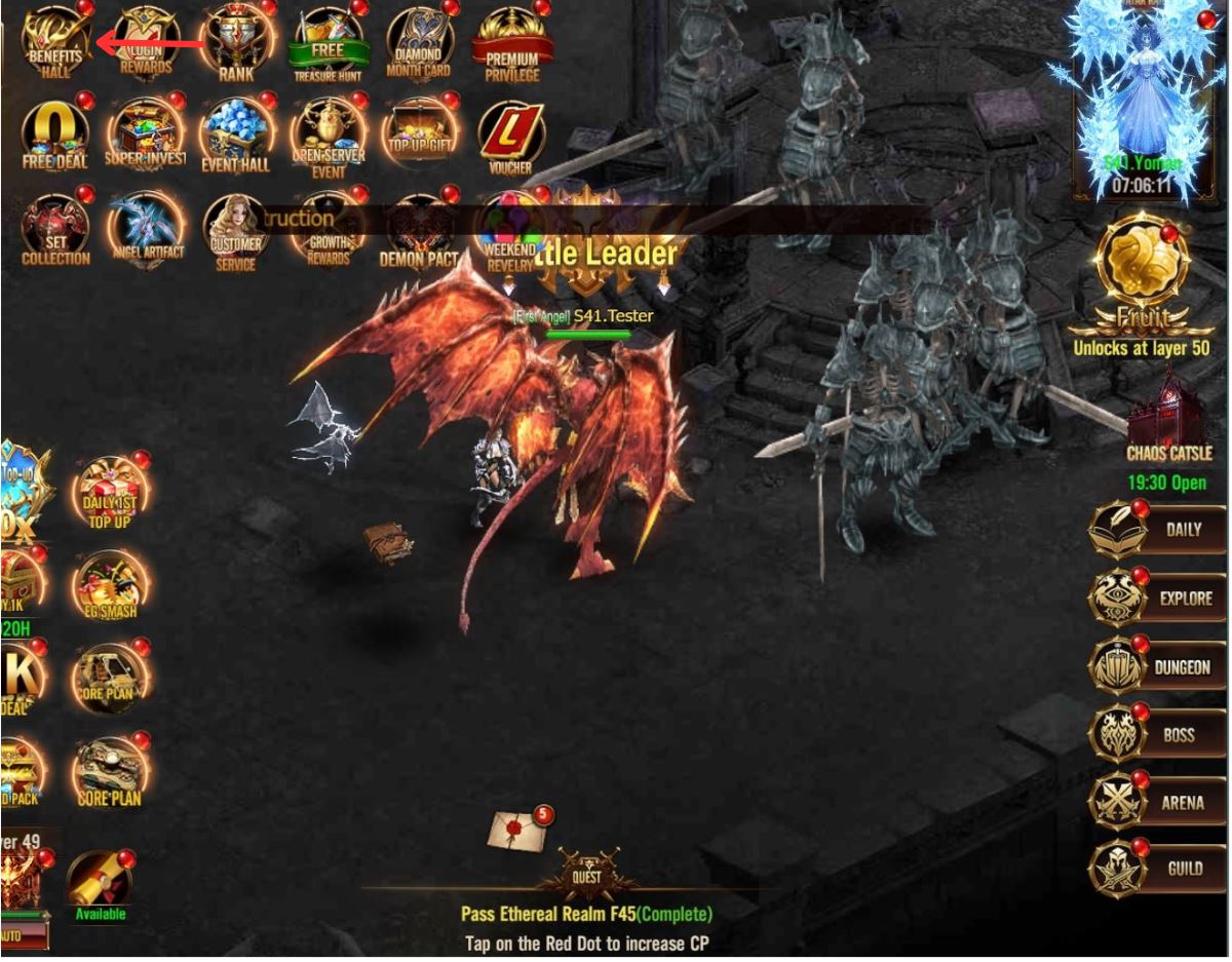 The first dungeon you will experience is the Demon Tower. Numerous divine points and treasure tickets are waiting for you.